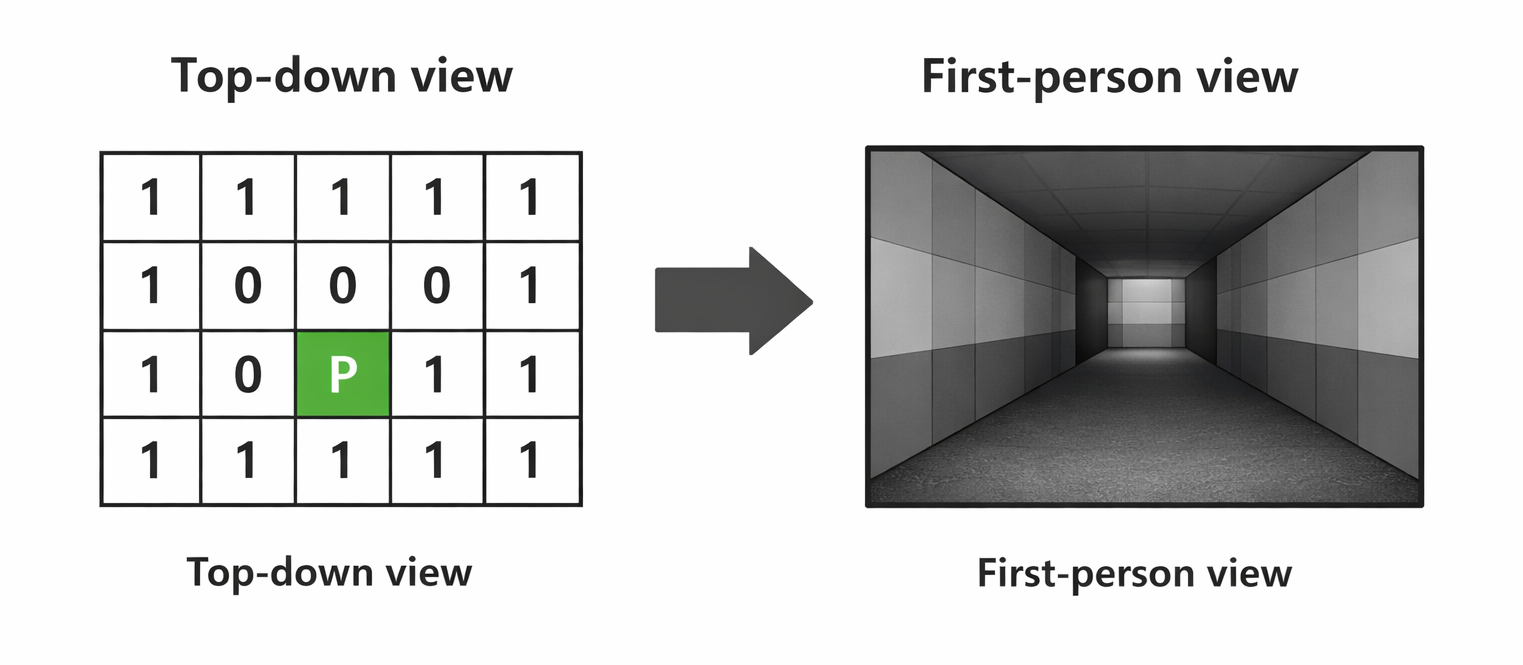 How we turned a 2D grid into a first-person 3D world using nothing but math, a flat pixel buffer, and zero GPU shaders.