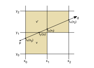 $$x_{v} = \begin{cases} \lceil P_x \rceil & \text{if ray faces right} \\ \lfloor P_x \rfloor & \text{if ray faces left} \end{cases}$$